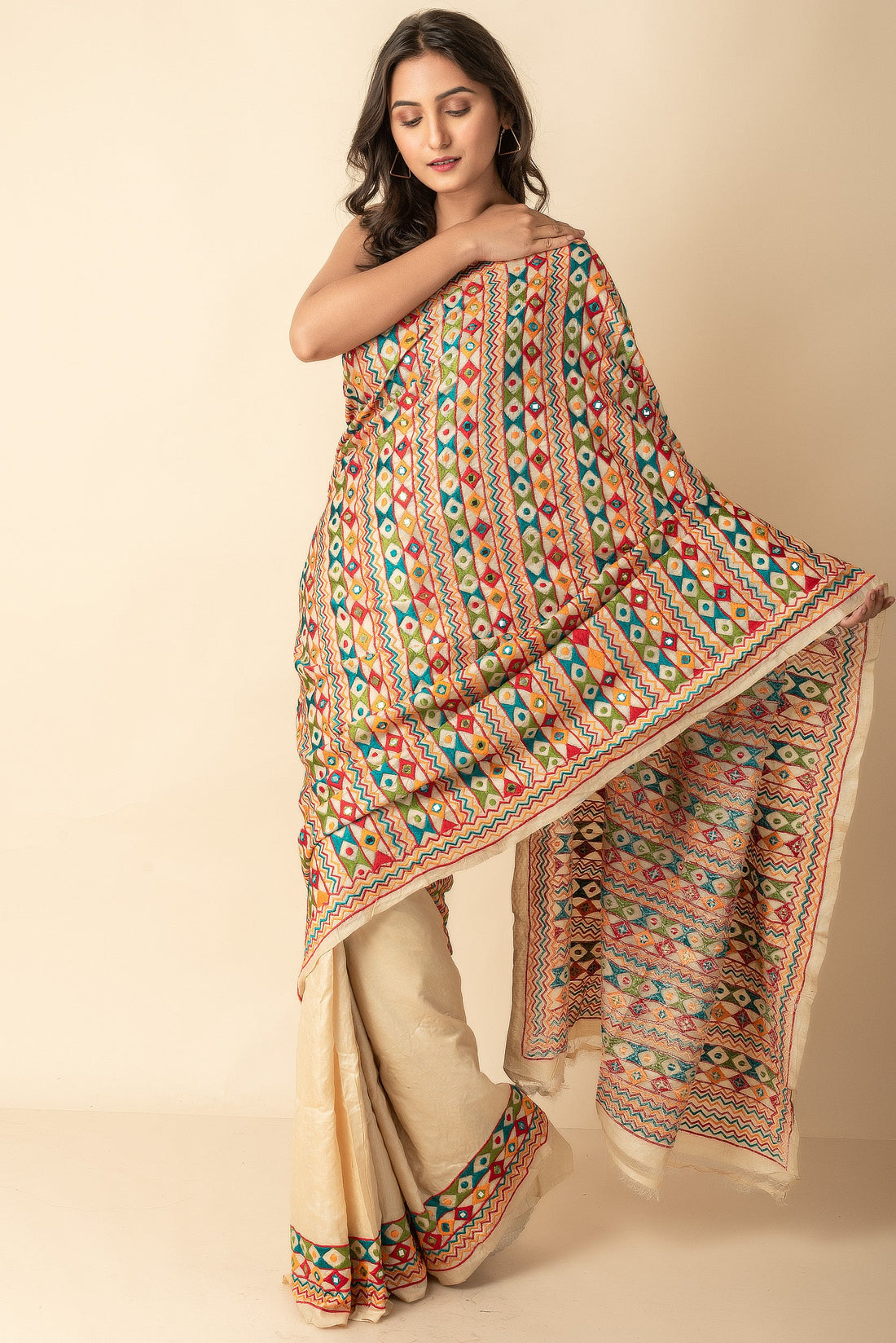 At Dailybuyys, we have brought forth to the customers, an exquisite embroidered saree, on pure ghicha tussar silk. The intricacies invested into it will surely enchant you. Come explore our collection on embroidered Ghicha Tussar Silk Saree Collection.