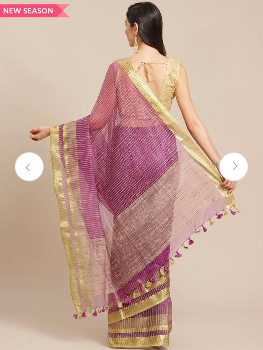 Violet 100 Count Pure Linen Sarees