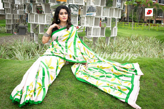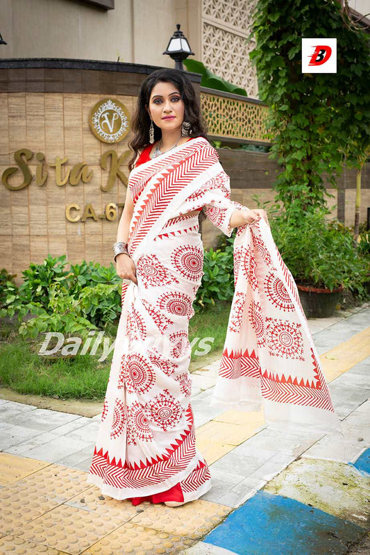 Barsha Block Printed Pure Silk Mark Certified Bishnupuri Silk Sarees