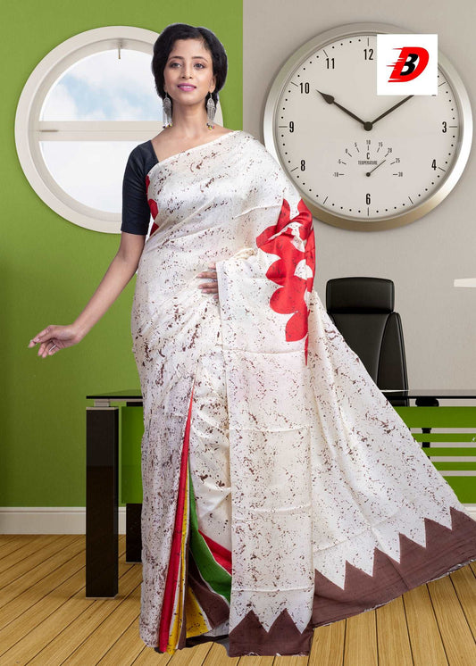 Beautiful Wax Batik Hand Painted Pure Silk Mark Certified Bishnupuri Silk Sarees