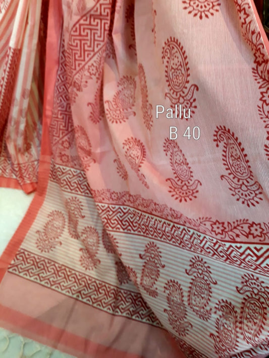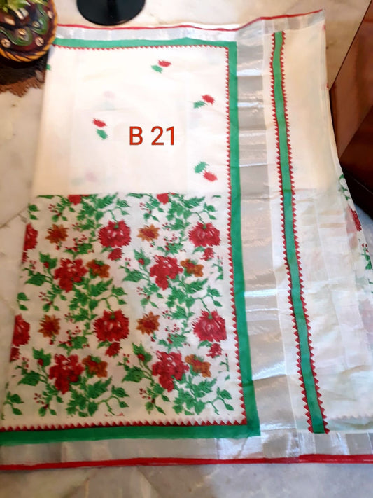 Purple Beige Hand Paint Kerala Pure Cotton Sarees