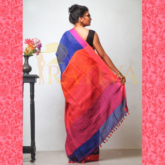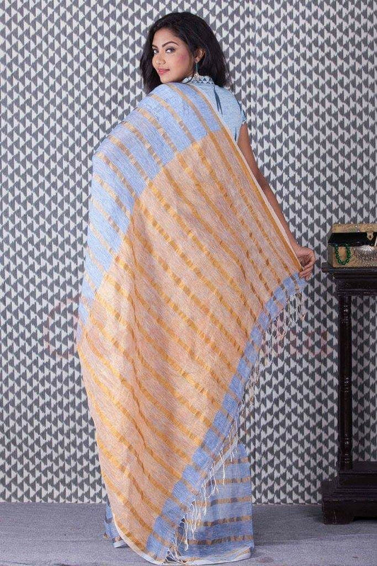Blue Orange Pure Linen Sarees