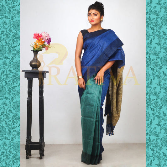 Blue Green Ball Pure Linen Sarees