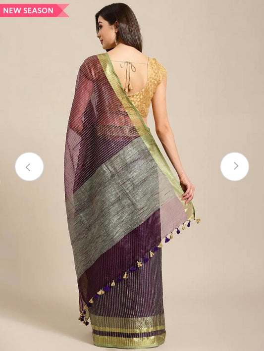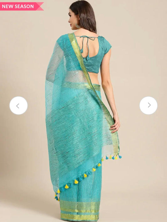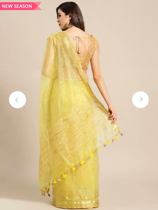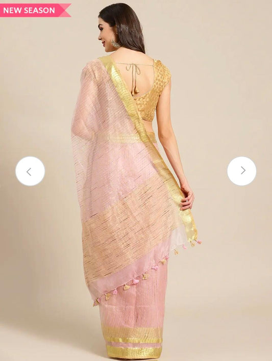 Solid Color Peach with Golden Zari Pure Organza Saree