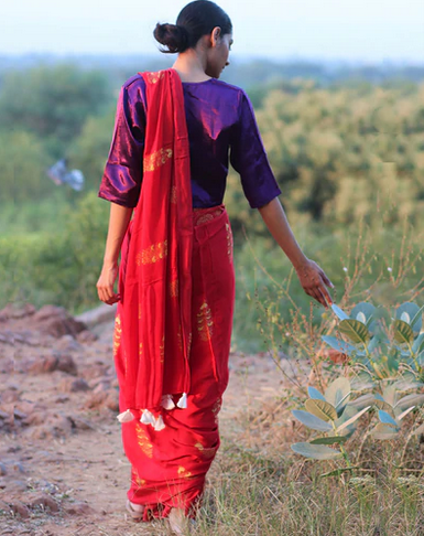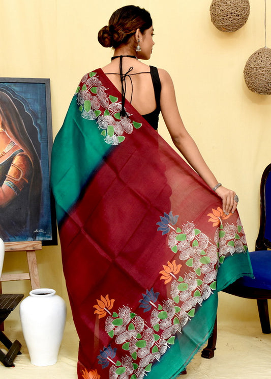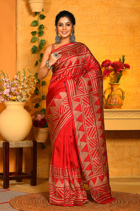 Red Wax Hand Painted Handloom Pure Silk Sarees