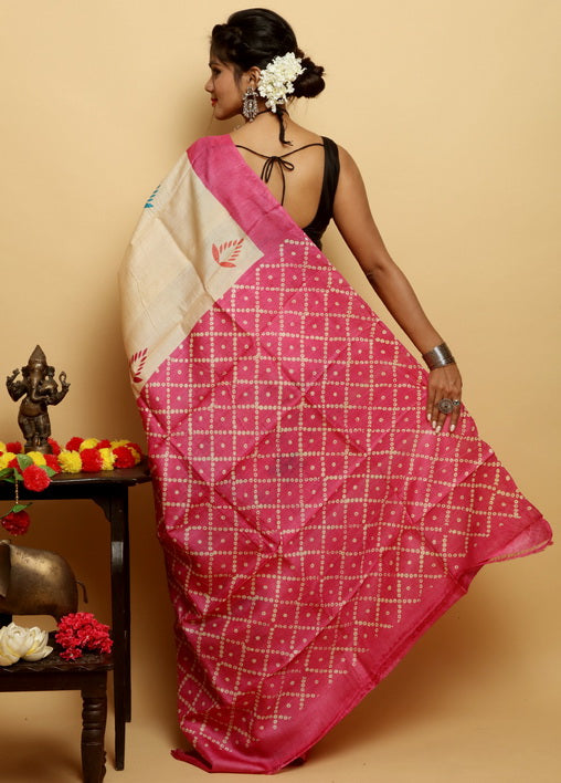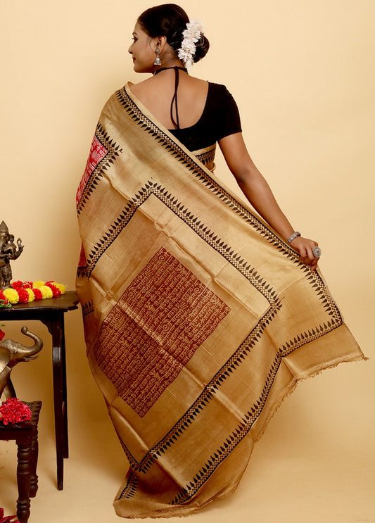Red & Yellow Bhagalpuri Silk Sarees