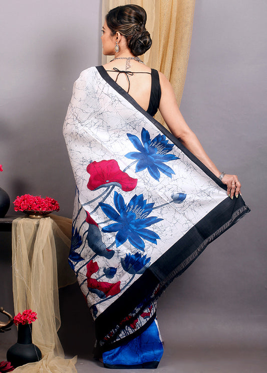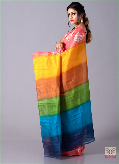 Multicoloured Hand Painted Pure Silk Mark Certified Murshidabad Silk Sarees