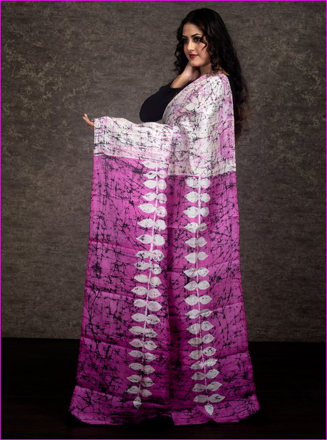 Pink Block Print Silk Mark Certified Bishnupuri Silk Sarees