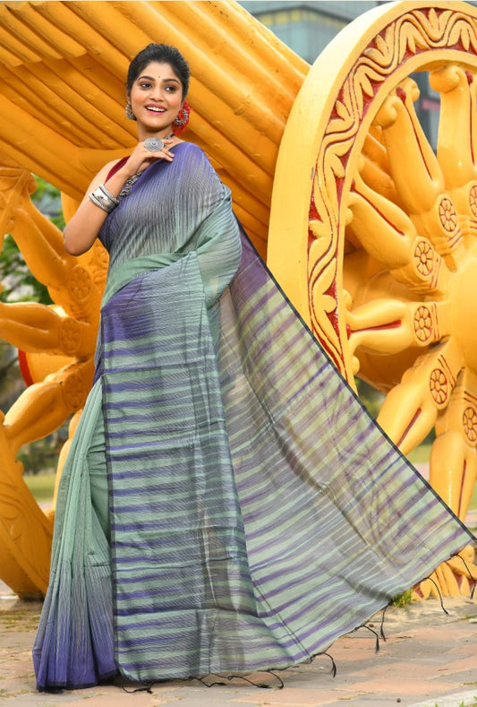 Green & Blue Design Bangladeshi Pure Cotton Kathiawari Sarees