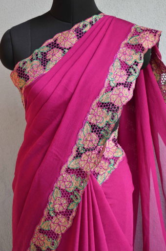 Magenta And Olympic Blue Border Pure Kaikhali Raw Silk Sarees