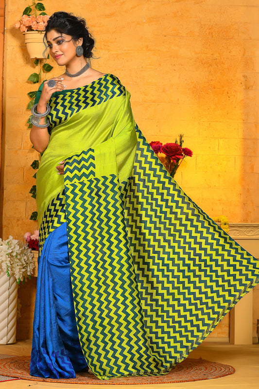 Neon Block Printed Silk Mark Certified Pure Murshidabad Silk Sarees