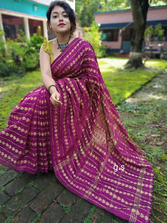 Rani Pink Bagru Print Chanderi Silk Sarees