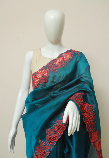 Blue Cut Work Pure Silk Mark Certified Tussar Silk Sarees