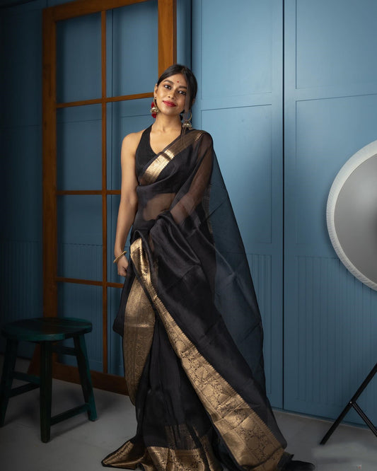 Golden Woven Designer Benarasi Organza Sarees