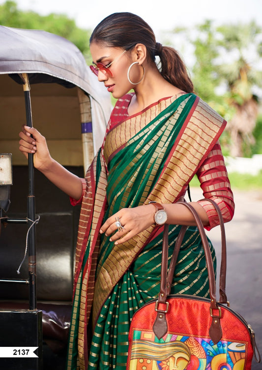 Red And Green Designer Border HandWoven Ikkat Silk Sarees