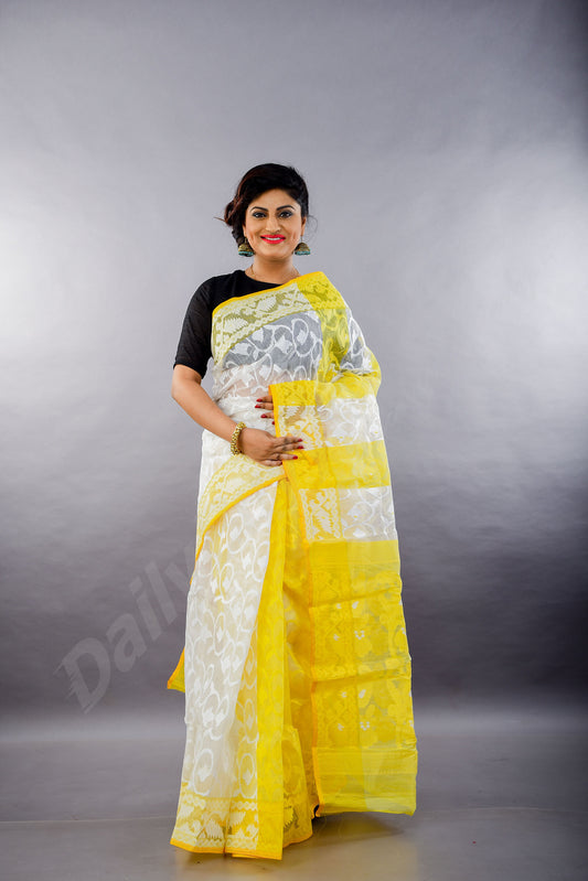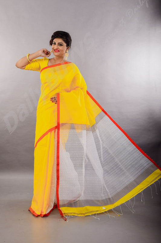 Yellow Cotton Handloom Jamdani Sarees (Add to Cart Get 15% Extra Discount