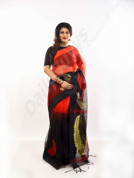 Red Black Tetul Pata Dhakai Jamdani Sarees