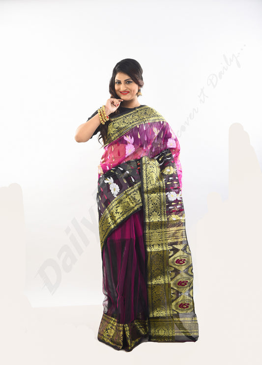 Buy Dhakai Jamadani sarees online and wear it on any special occasion to look hot and different from others. The classy saree is soft and comfortable to make you feel relaxed all day long. Choose the latest color combination and design work over it – either for you or to present as gift to someone. Buy Dhakai Jamadani Saree online from Dailybuyys and save more.