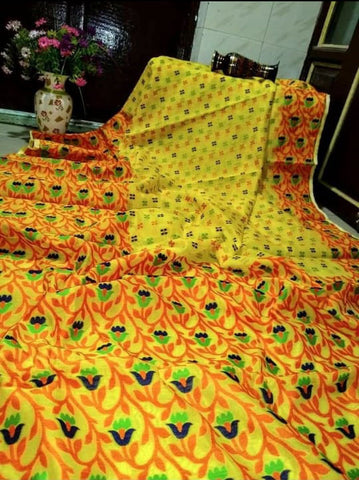 Yellow Cotton Handloom Jamdani Sarees (Add to Cart Get 15% Extra Discount