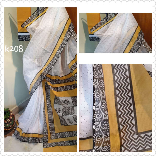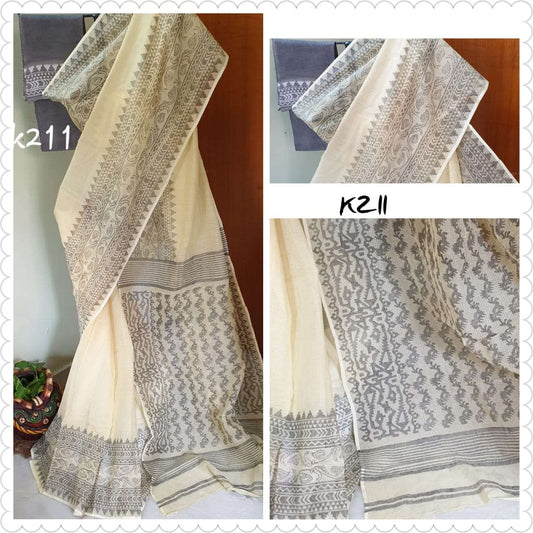 Brown Beige Screen Print / Block Print KK Kota Doriya Sarees