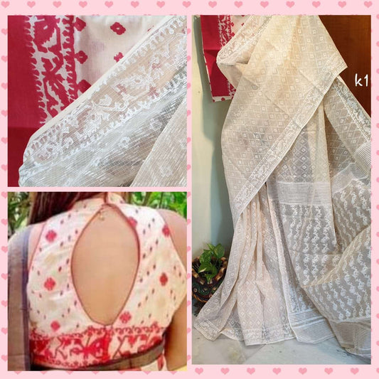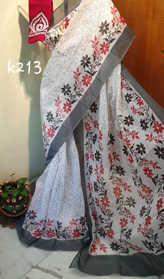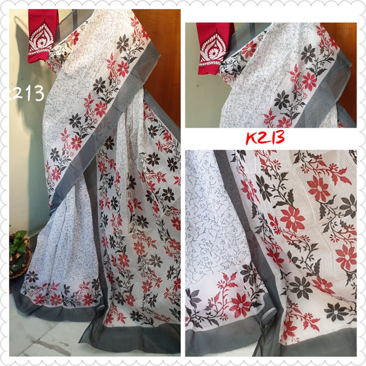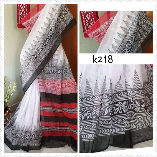 White KK Pure Pure Cotton Kota Doriya Sarees