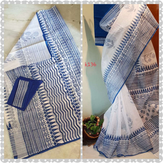Blue Screen Print / Block Print KK Kota Doriya Sarees
