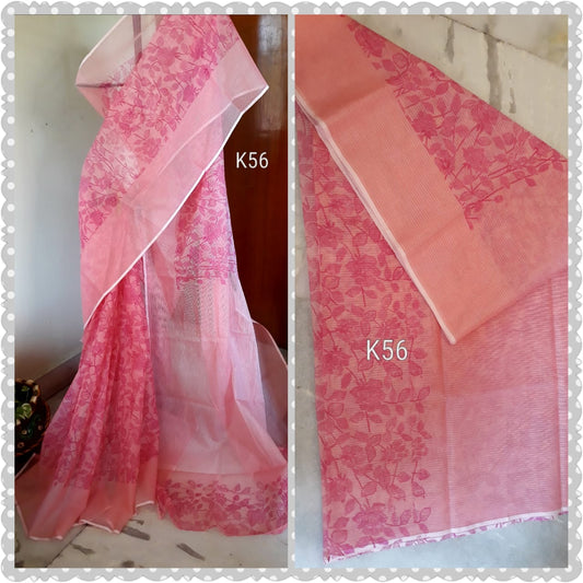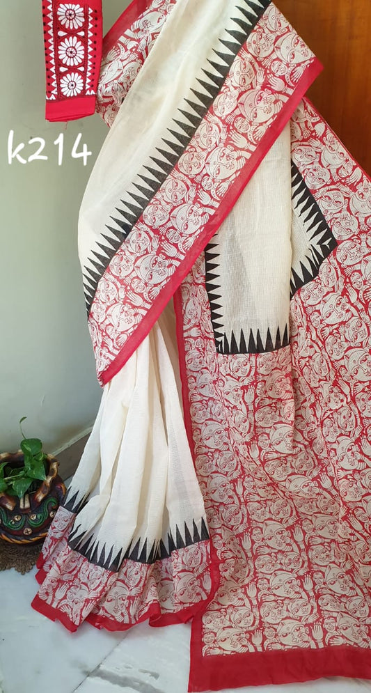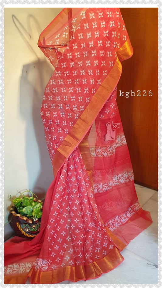 Red Orange Screen Print / Block Print KK Kota Doriya Sarees