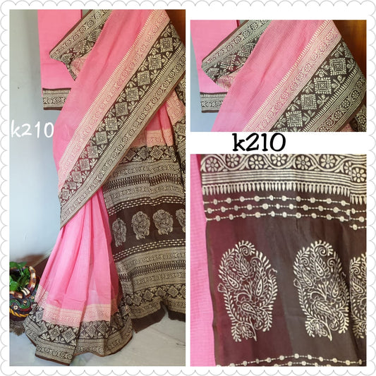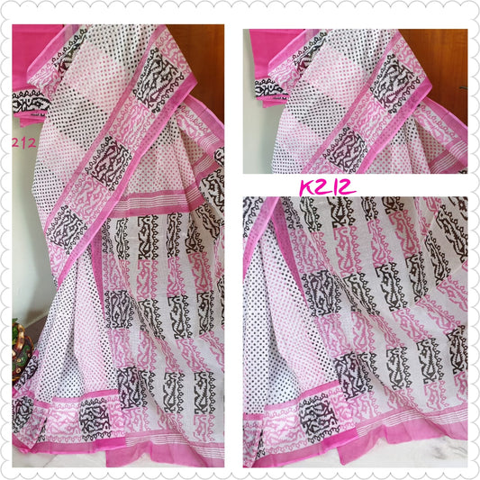 Pink Beige KK Pure Pure Cotton Kota Doriya Sarees
