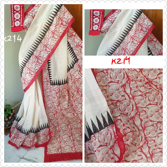 Red Beige KK Pure Pure Cotton Kota Doriya Sarees