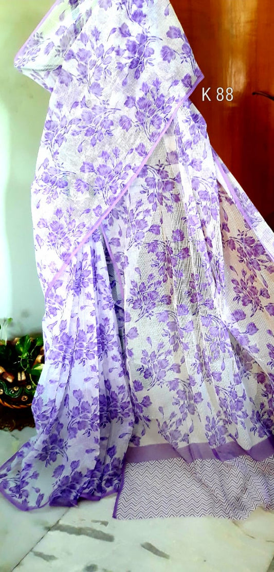 Purple And White Block Printed Pure Pure Cotton KK Kota Doriya Sarees