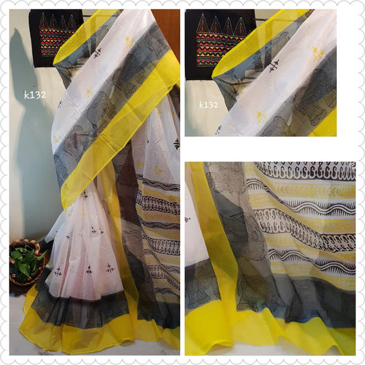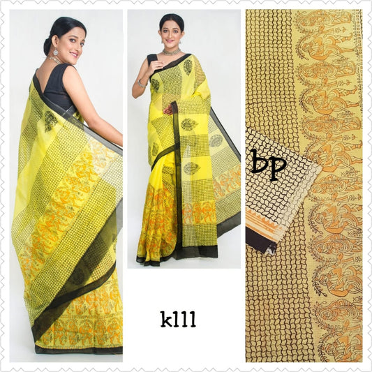 Black Yellow KK Pure Pure Cotton Kota Doriya Sarees