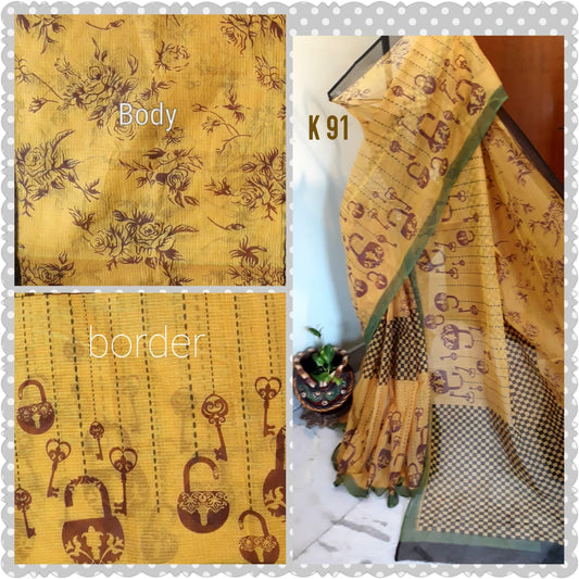 Dailybuyys Kota Doria or Kota Doriya is the name of a light weight fabric made of tiny woven squares (khat) which is still hand woven on traditional pit looms in Kaithoon near Kota in Rajasthan and in some of the surrounding villages. Kota Doriya Sarees are made of pure cotton and silk and have square like patterns known as khats on them. The...