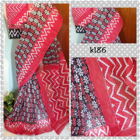 Dailybuyys Kota Doria or Kota Doriya is the name of a light weight fabric made of tiny woven squares (khat) which is still hand woven on traditional pit looms in Kaithoon near Kota in Rajasthan and in some of the surrounding villages. Kota Doriya Sarees are made of pure cotton and silk and have square like patterns known as khats on them. The chequered weave of a Kota sari is very popular. They are very fine weaves and weigh very less.