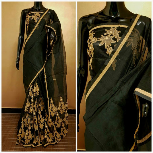 Black Beige Braso Silk Kota Silk Sarees