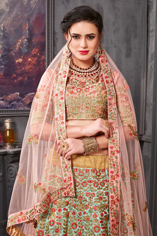 Sea Green & Navy Blue, Peach Designer Lehenga Choli