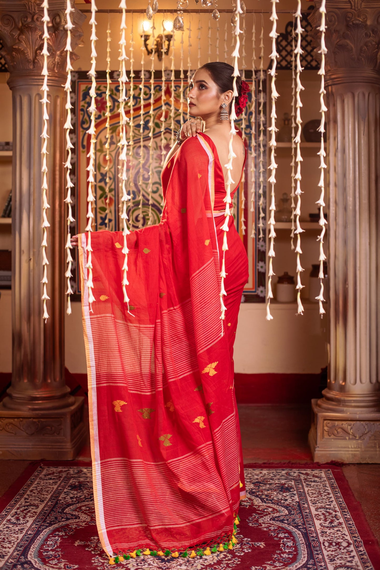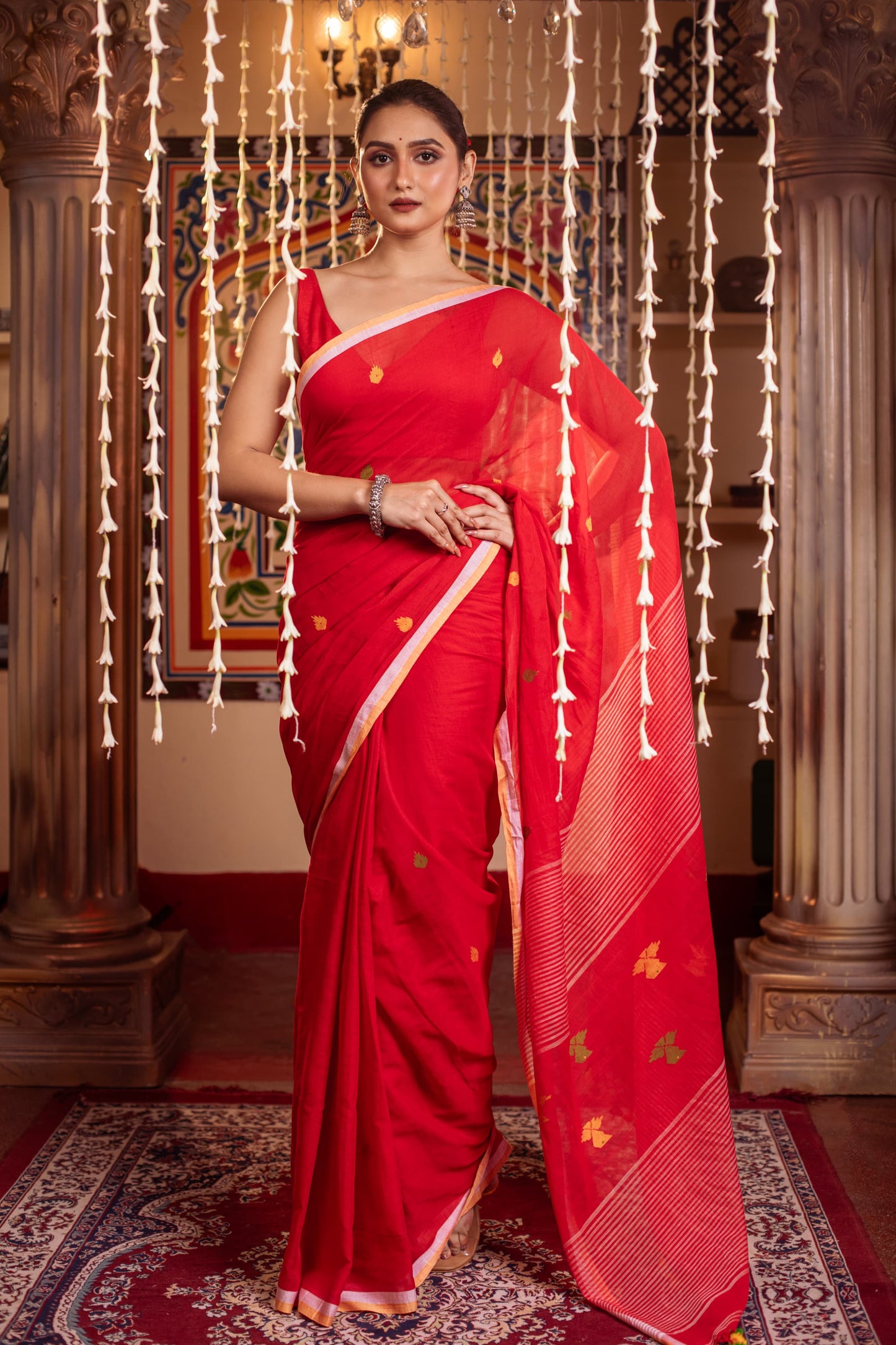 Pure Mulmul Cotton red Jamdani Weaving saree