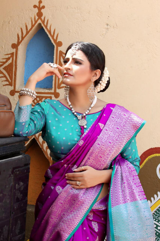 Self Weaved Dual Tone Heavy Purple Banarasi Silk Sarees