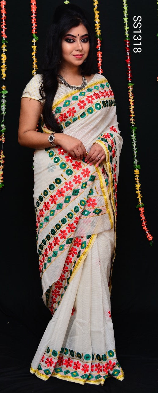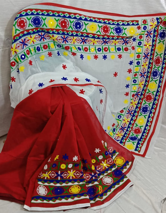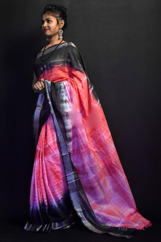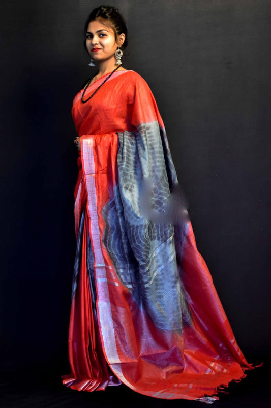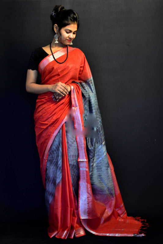 Maroon Orange Designer Pure Cotton Handloom Sarees