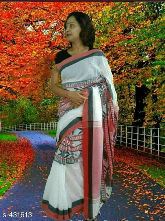 Beige Red Bangladesh Pure Cotton Handloom Sarees