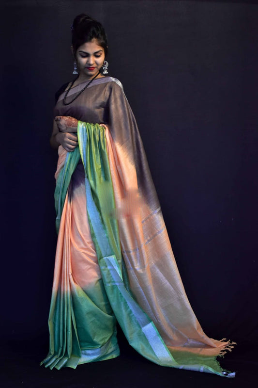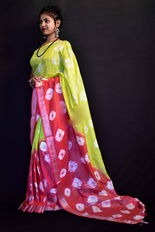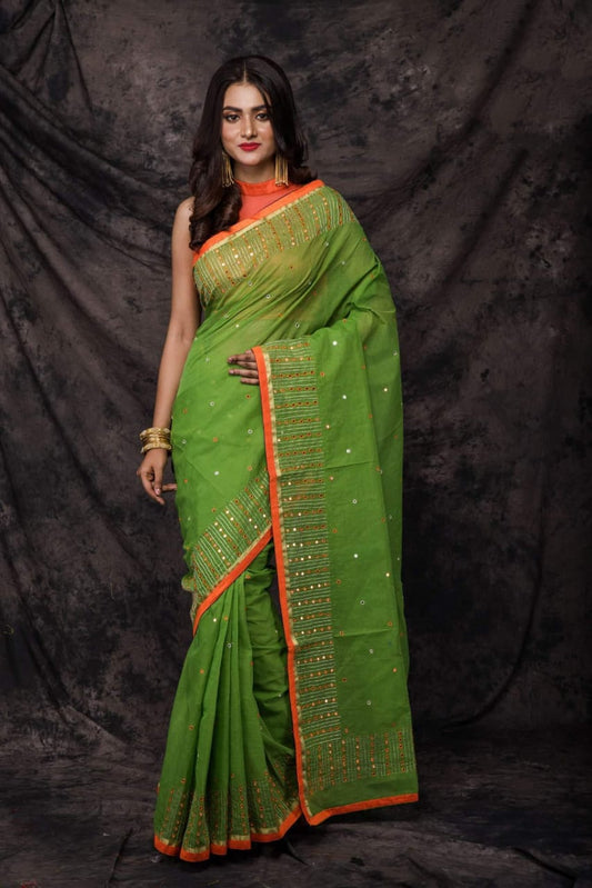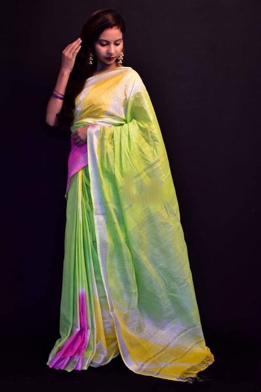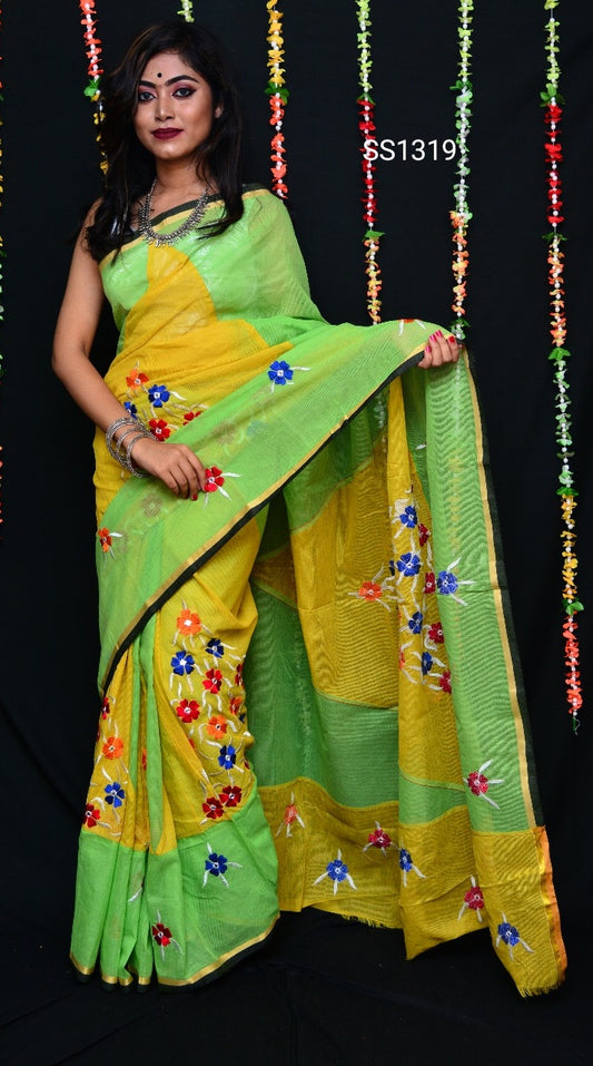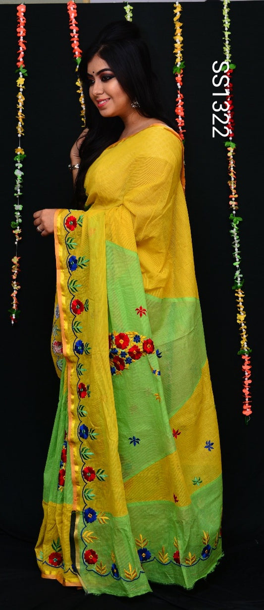 Yellow Green Bangladesh Pure Cotton Handloom Sarees