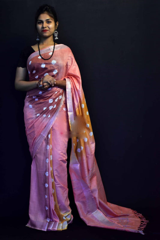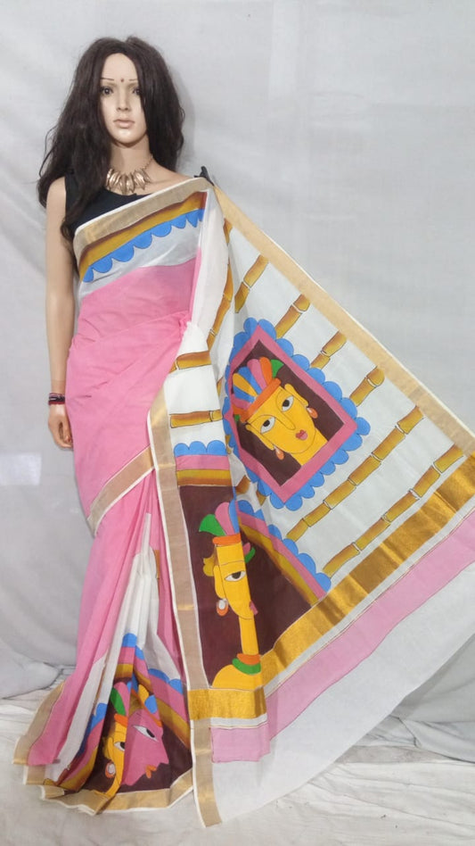 Pink Hand Painted Pure Cotton Handloom Sarees