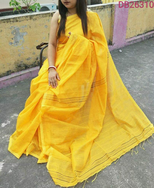 Yellow Bangladesh Pure Cotton Handloom Sarees