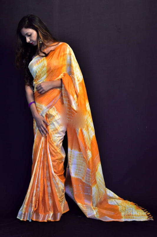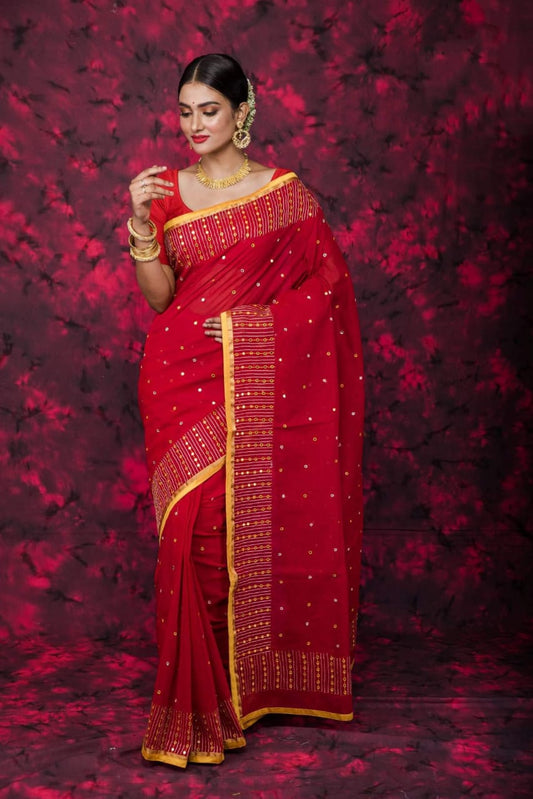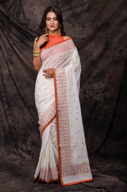 Orange Bangladesh Pure Cotton Handloom Sarees