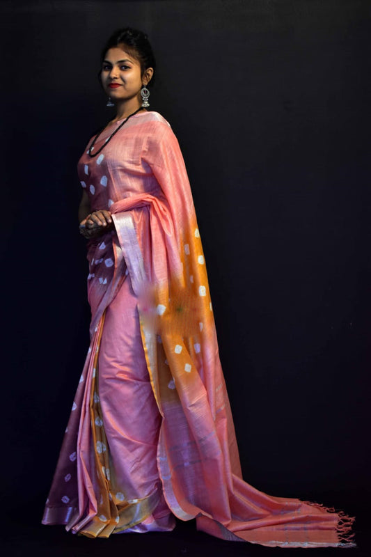 Violet Yellow Bangladesh Pure Cotton Handloom Sarees