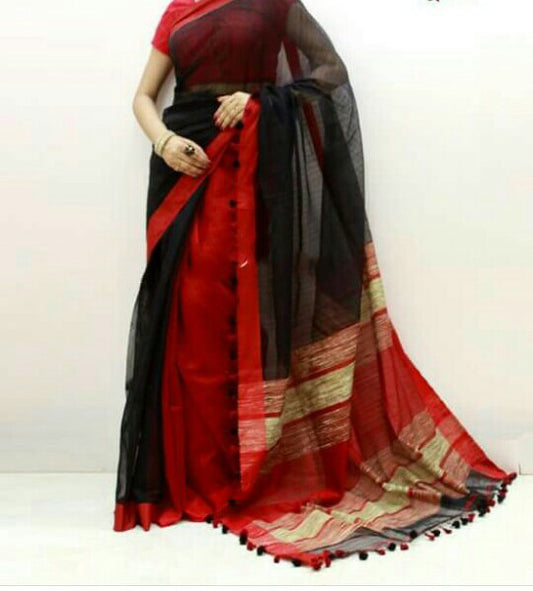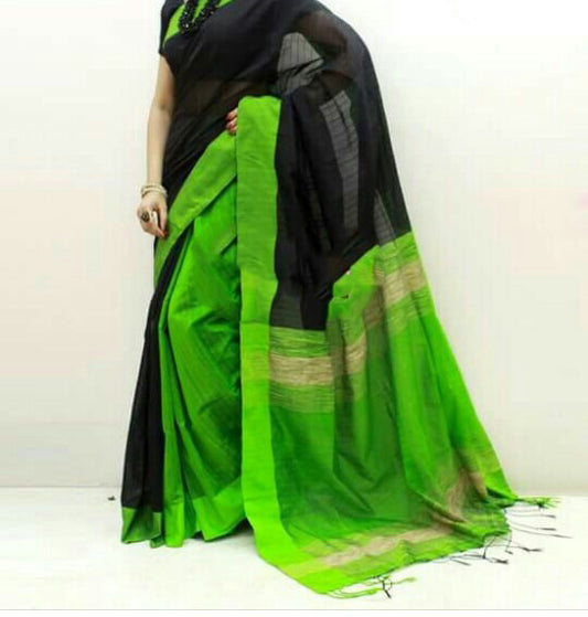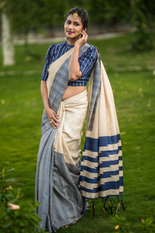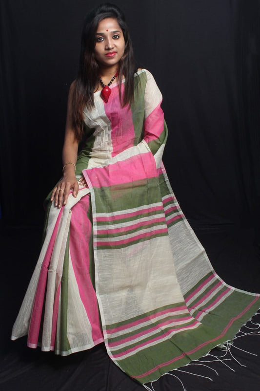 Beige Pink Pure Cotton Bengal Handloom Silk Sarees