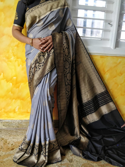 Grey Blue Kanjivaram Silk Sarees