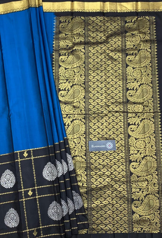 Pure Black Blue Kanjivaram Silk Sarees