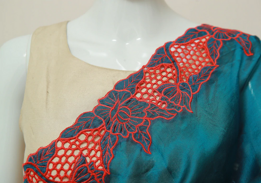 Blue Cut Work Pure Silk Mark Certified Tussar Silk Sarees