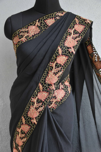 Black Cut Work Pure Silk Mark Certified Tussar Silk Sarees