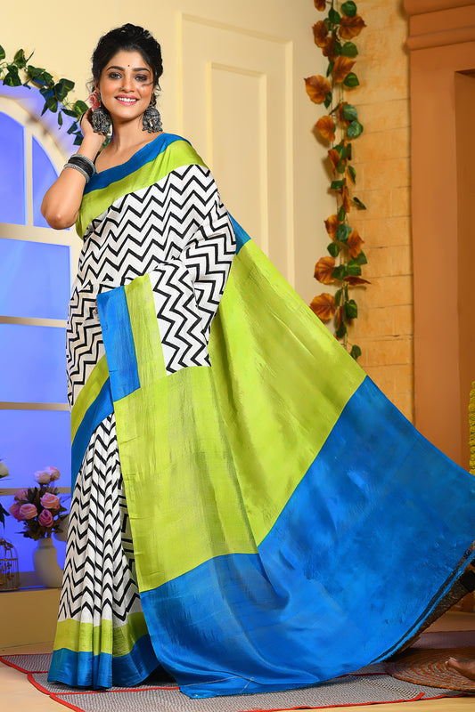 Neon Block Printed Silk Mark Certified Pure Murshidabad Silk Sarees